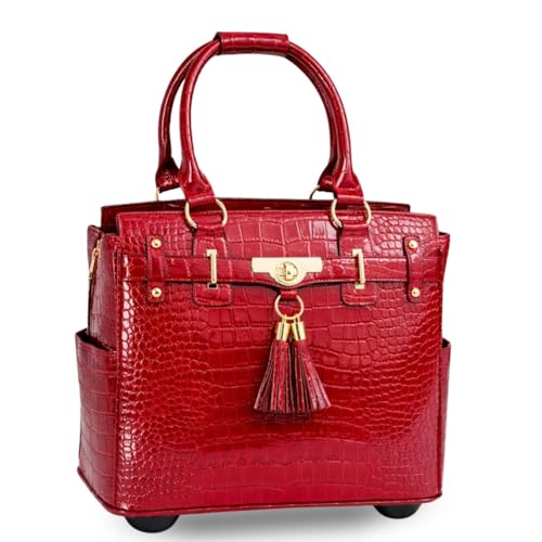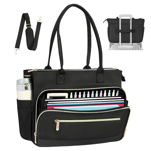 Teamoy Rolling Teacher Bag with 15.6 Inch Laptop Compartment, Teacher Tote Bag with Detachable Wheels, Multi-Functional Rolling Tote, Black