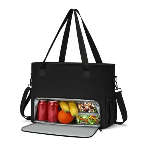 ZOMFELT Lunch Tote Bag for Women, 15.6 Inch Puffer Laptop Lunch Bag, Quilted Large Work Tote Bag with Insulated Lunch Compartment, Womens Lunch Bags for Work, Travel, Nurse, Teacher, Camping, Black