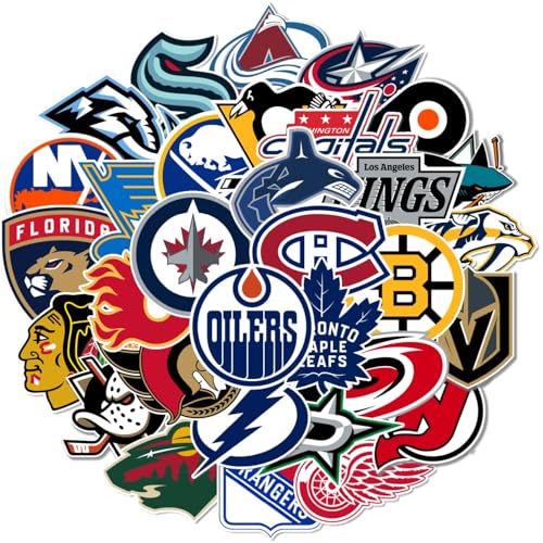 32 Pcs Hockey Teams Stickers, Vinyl Waterproof Decals for Laptop, Bottles, Phones, Skateboards, Guitars, Luggage, Hockey Game Party Supplies Gifts for Adults Teens Children