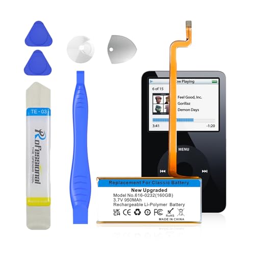 950mAh New Upgrade Replacement 616-0232 Battery Compatible with iPod 5th - 7th Generation Video Classic A1136 A1238 6th 80GB 6.5th 120GB 7th 160GB 5th 30GB with Repair Tools