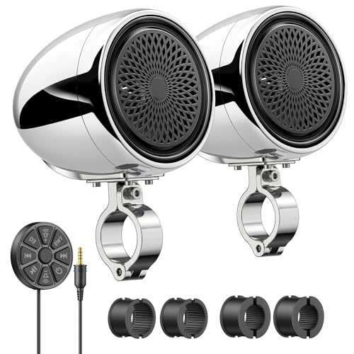 UTV ATV Bluetooth Amplifier Sound System Hand-Free Speakers FM USB Audio System Stereo 3 Inch Speakers 12V Motorcycle Waterproof Audio FM Radio Stereo Speaker for iPhone/iPod/MP3 鈥 (Black Speaker)