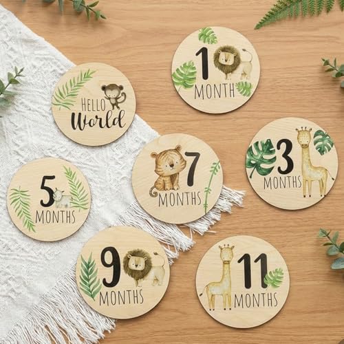 12pcs Wooden Baby Monthly Milestone Cards,Pregnancy and Baby Growth Monthly Milestone Wood Discs,Milestone for Baby Boy,Months Signs Milestone for Baby Girl,Fathers Day Gift
