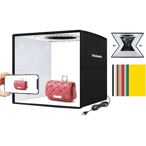 Glendan Light Box 16" Portable Photo Light Box with 112 LED Lights & 6 Kinds of Double-Sided Color Backdrops and Adjustable Soft Light and Warm Light for Product Photography