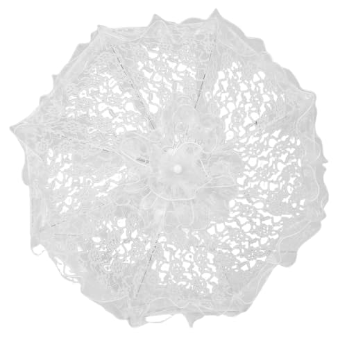 Handmade Lace Umbrella - Flower Embroidery Parasol - Fashion Decoration Umbrella - with Solid Wooden Handle - for Wedding Bride Photography(White,L)