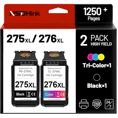 NYNYG 275XL 276 XL Ink Cartridges Remanufactured for Canon PG-275XL CL-276XL Ink Cartridges Compatible for PIXMA TS3522 TS3520 TS3500 PIXMA TR4720 TR4722 TR4700 TS3720 TR4723 (1Black, 1Tri-Color)