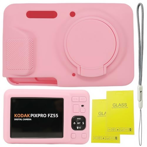RAIALL Case for Kodak PIXPRO FZ55 Digital Camera, Soft Silicone Protective Case for Kodak PIXPRO FZ55 Vlogging Camera, Lightweight FZ55 Camera Case Cover Grip Body Skin, Jelly Pink