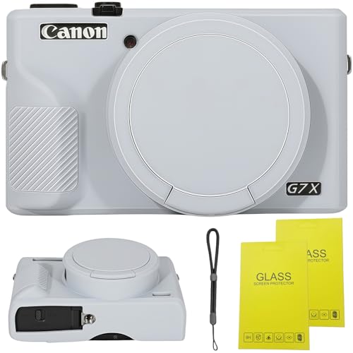 SZHSYJY Case for Canon Powershot G7 X Mark III Digital Camera,Soft Silicone Case for Canon Powershot G7X Mark III DSLR Camera,Comes with 2 Screen Protectors and 1 Wrist Strap. (Grey)