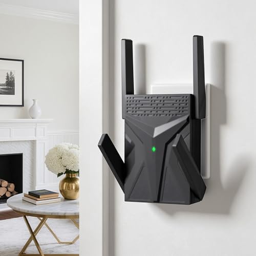 WiFi Extender with USB-C, AC1200 Dual Band Signal Booster & Repeater, Covers Up to 12000 Sq.ft and 50 Devices, 4 High-Gain Antennas, Ethernet Port, Plug and Play (Black)