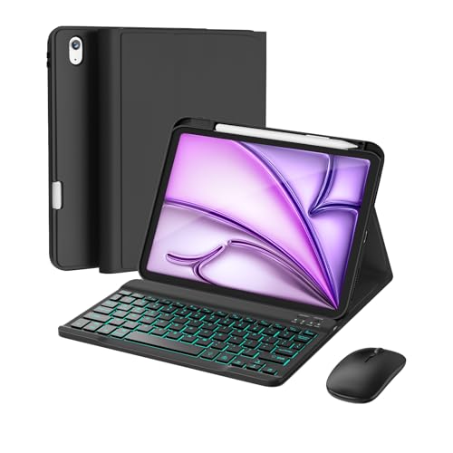 TUNKARMOR for iPad Air 13-inch (M3/M2) & iPad Pro 12.9-inch (6th/5th/4th/3rd Gen) Case with Keyboard - Rainbow Backlit Keyboard Case - Built in Pencil Holder with Mouse, Pink