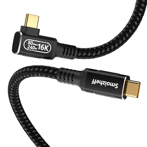 Short USB C Cable,0.5m/1.65ft, 90 Degree Right Angle,80Gbps USB 5.0 Cable, 240W PD3.1 Fast Charging Cable, Single 16K/Dual 8K Video Compatible with Thunderbolt 5/4, USB4, for M_acBook, Galaxy, More