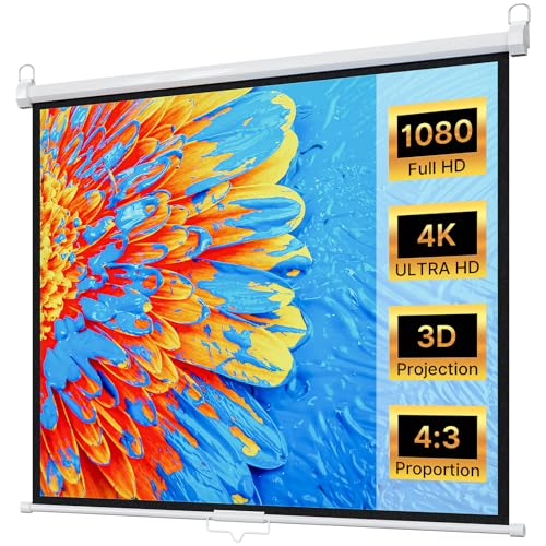 Projector Screen 100 Inch 16:9 - Auto-Locking Portable Projection Screen for 4K 3D 1080P HD - Manual Projector Screen Pull Down for Indoor Outdoor Home Theater Office Movies by PERLESMITH