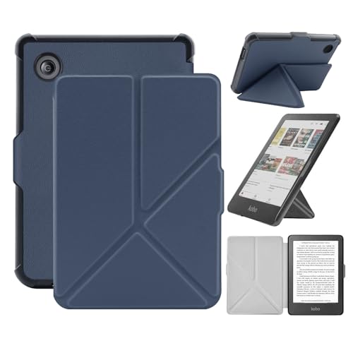 BOZHUORUI Origami Stand Case for Kobo Libra H2O eReader (2019 Release/Model N873) - Premium PU Leather Protective Cover with Auto Sleep/Wake (Dark Blue)