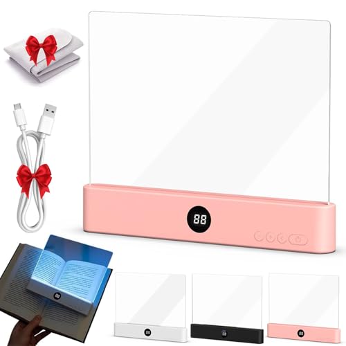 Mllel Smart LED Reading Book Light, Rechargeable LED Clear Full Page Reading Light 3 Colors & Timer, Glare-Free Glow with Fingerprint-Resistant Design for Night Reading Gifts for Readers Kids (Pink)
