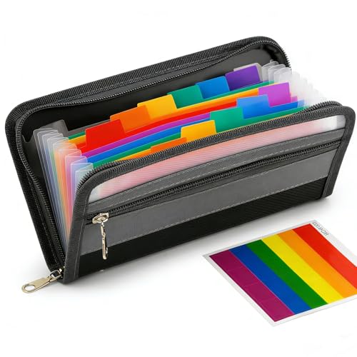 SortRax Accordion File Organizer 12 Pockets, Monthly Bill Receipt Tax Organizer, Expanding File Folders with Larger Bright Tabs, Fits Letter/A4 Size - Black