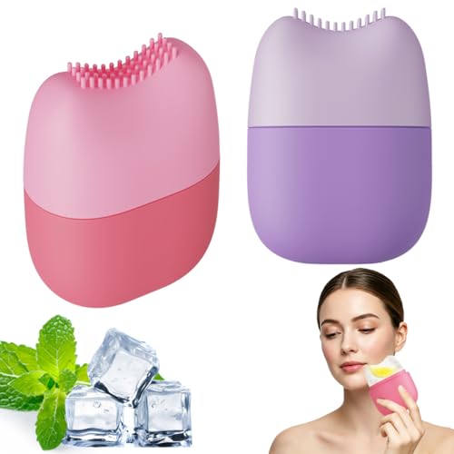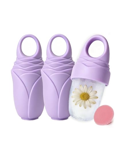 Mabnuby Ice Roller for Face and Eye, 3 Pcs Reusable Silicone Ice Face Roller, Ice Cube Mold for Pores, Anti Wrinkle, Eye Massager, Shrink Pores, Reduce Puffiness, Skin Care Cooling Tool, Purple