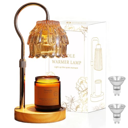 LUREXA Candle Warmer Lamp with Timer - Adjustable & Fixed Height Wax Melt Lamp for Jar Candles, Includes 2 Bulbs, Dimmable Vintage Home D茅cor, Gift for Women & Mom (A1-Strawberry Lotus)