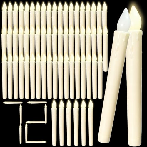 Yme 10pcs LED Ivory Taper Candles with Timer and Remote, Plastic Window Candles with Warm White Light Battery Operated for Candlesticks Wedding Halloween Christmas Decorations