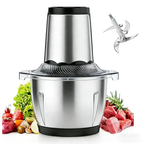 Electric Meat Grinder, Qinkada 500W Food Processor 3.5L Chopping Meat, 14Cup Large Stainless Steel Electric Food Chophper with 4 Sharp Blades 3 Rotating Speed Levels and Spatula