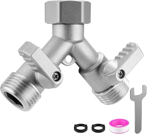 BEAUGIREW Garden Hose Y Valve Hose Splitter Solid Brass Hose Splitter 2 Way Hose Adapter 3/4" GHT Thread with 4 Presure Washers