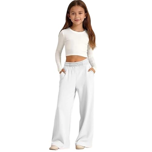 Girls Wide Leg Sweatpants 饾悑ounge Pants Elastic Waist Baggy Pants Kids High Waisted Joggers Tween Girls Trendy Clothes