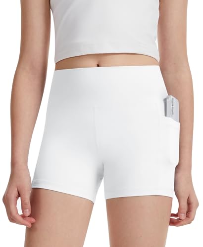 Girls Yoga Shorts Teen Gymnastics Dance Volleyball Athletic Slim Biker Pants Casual Comfy Running Workout Basic Tights