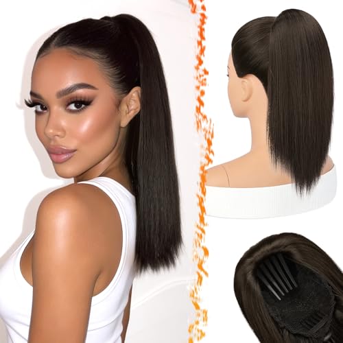 BARSDAR Dark Brown Ponytail Extension - 20 Inch Curly Wavy Drawstring Ponytail Hair Extensions for Women - Synthetic Clip in Pony Tails Hairpieces Fake Ponytails Daily Party - Dark Brown