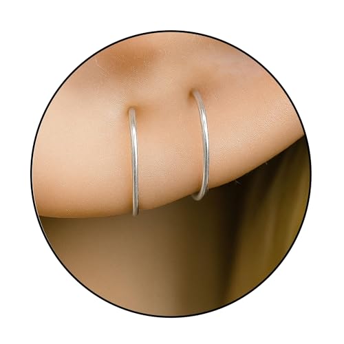 Fake Nose Rings For Women - Set of 2 Tiny Thin 20 Gauge 7mm Faux Nose Piercing Hoops - Handmade 925 Sterling Silver 14k Gold Filled Clip On Nose Jewelry - No Piercing Needed - Gift Ready