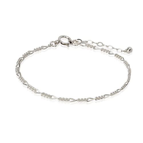 Annika Bella Double Stranded Sterling Silver Bracelet for Women, Dainty Waterproof Chain Bracelet for Women, Teen (Twirl & Satellite Chains)