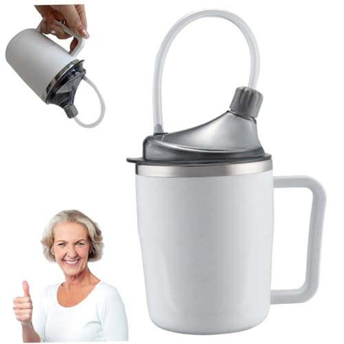 Qancesd Adult Sippy Cup With 2 Handles - 12oz No Spill Straw Cup for Elderly, Disabled Patients With Dysphagia
