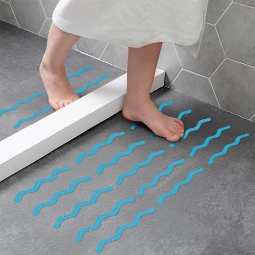 Shower Stickers Bathtub Strips Anti Slip - 24 Pcs Shower Floor Strips for Showers Non Slip, Adhesive Toilet Strip for Tub Stairs Floors, Blue