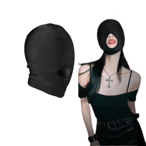 MFMYEE Bondage Hood - BDSM Head Cover Mask with Collar, Adjustable Full Face Blindfold Mask, Fetish Adult Sex Toys Leather Restraint Head Hood SM Flirt Masks