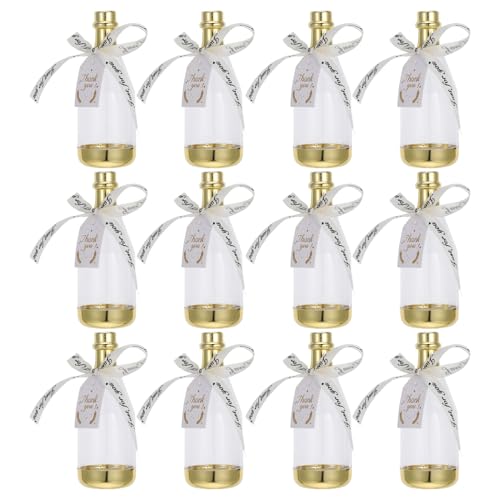 NUOBESTY Bottle Shaped Candy Boxes 12Pcs Acrylic Mini Candy Containers with Gold Ribbon for Wedding and