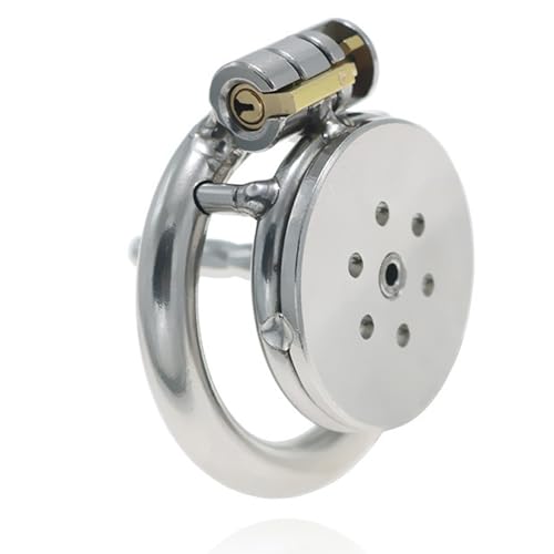Men's recessed small locking core honeycomb security cage, ventilated and breathable, with four fixed arc rings (38mm,43mm,48mm,52mm) (Black, Small)