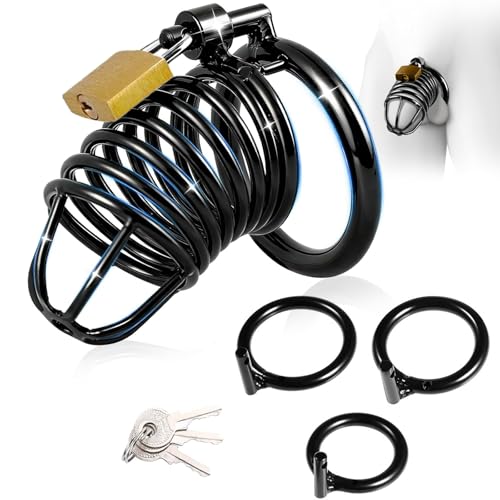 Chastity Lock Male Cock Cage - ABS Sissy Chastity Devices with Invisible Lock & 6 Adjustable Cock Ring, Penis Abstinence Elasticity Belt Comfortable Penis Cage Bondage Gear Sex Toys