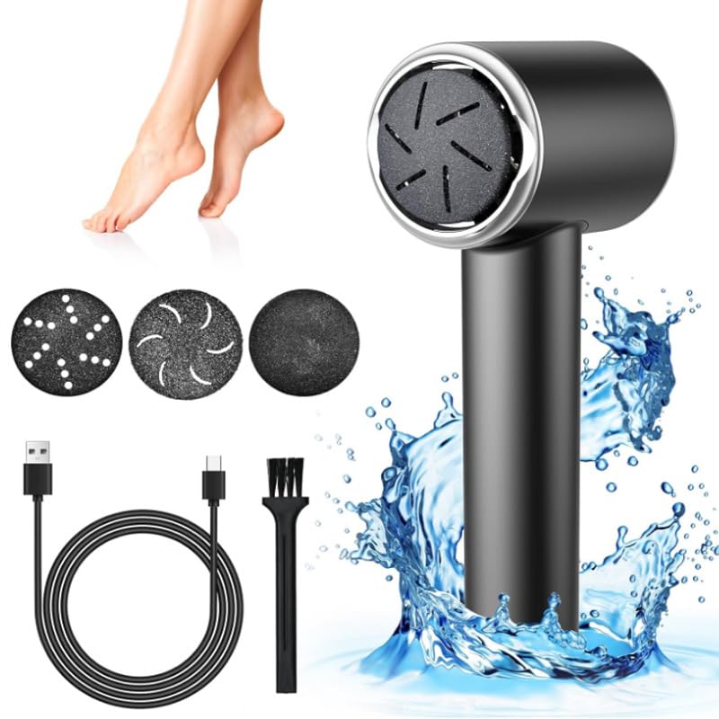 Electric Foot Callus Remover with Vacuum 2 Speed Waterproof Foot File USB Powered Pedicure Tool with 3 Roller Heads for Dry Dead Skin Home Care