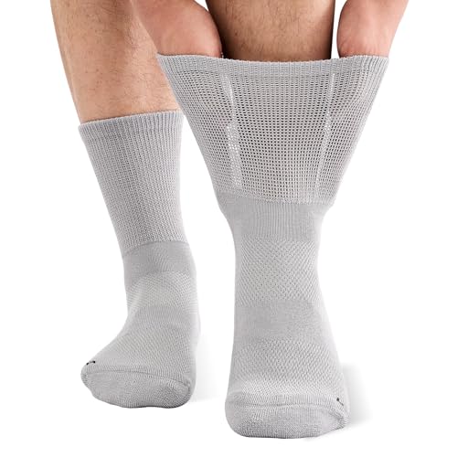 Mokah Stone Diabetic Socks for Men Women, COOLMAX LYCRA Moisture-Wicking Non-Binding Crew Socks Neuropathy Socks, 3 Pairs