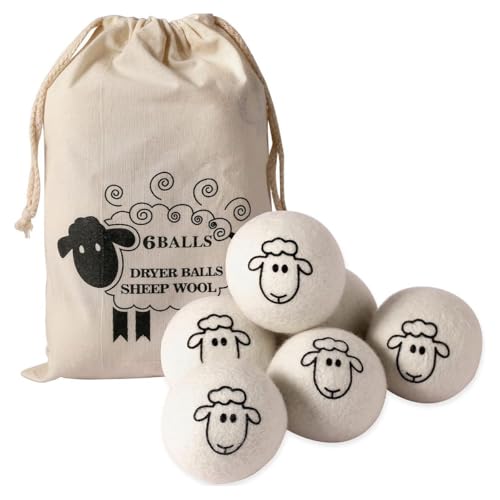Wool Dryer Balls-XL 6Pack Eco Dryer Balls-Dryer Balls Laundry Reusable-Softens Laundry Naturally-Reduces Drying Time & Static-No More Dryer Sheets-With Storage Bag