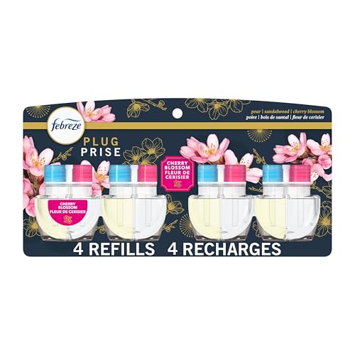 Febreze Plug In Air Freshener, Odor-Fighting Scented Oil Refill, Air Fresheners for Home and Bathroom and Kitchen, Long Lasting for Strong Odors, Cherry Blossom Scent, 2 Count