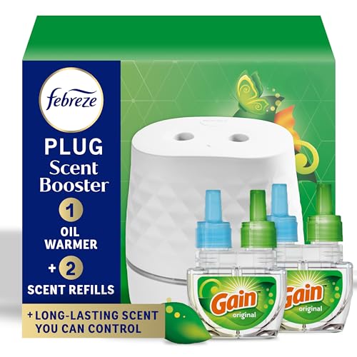Febreze Plug In Air Freshener, Odor-Fighting Scented Oil Starter Kit, Air Fresheners for Home and Bathroom and Kitchen, Long Lasting for Strong Odors, Light Bamboo Scent, Warmer + 1 Refill