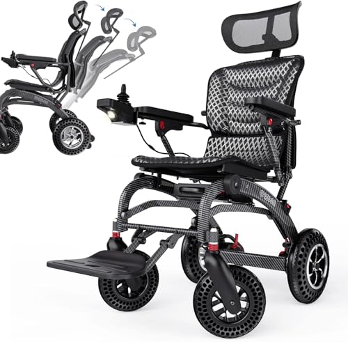 Travel Buggy AeroLux-2C Electric Wheelchair, Lightweight, Foldable, Carbon Fibre Wheelchair, Upgraded LCD Panel Joystick, Bluetooth Connectivity for Caregiver Control (Add-on Accessory), Crossframe Folding, 12" Rear Wheels for Better Comfort, Air Travel Compatible, Shipped and Serviced in Canada (Black, No Caregiver Control)