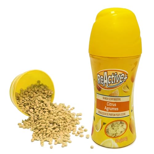 Reactive Citrus Scent Laundry Beads, In-Wash Booster, 128g (Pack of 1), Long-Lasting Freshness, Odour Removal, Compatible with All Washers