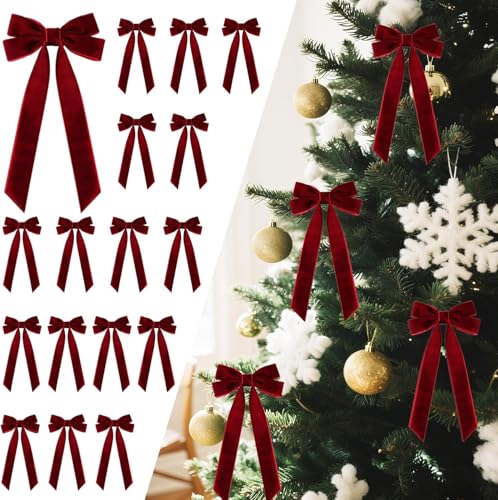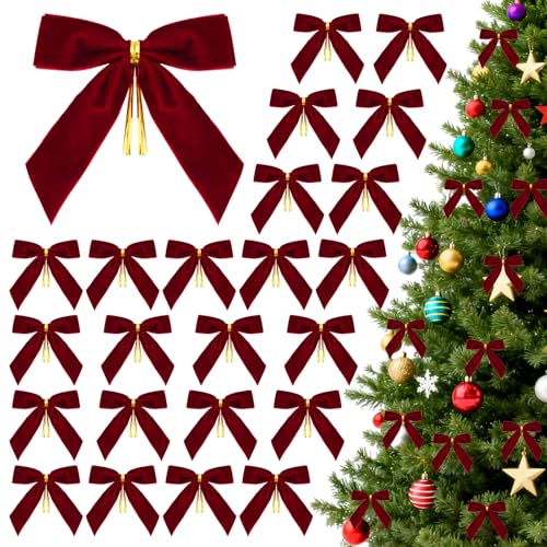 24 Pcs Velvet Christmas Bows for Christmas Tree, 3.5 x 3.5 Inch Red Bows for Xmas Tree, Wreaths, Garlands, Gift Wrapping, Wedding Parties Holiday Decorations (Burgundy)