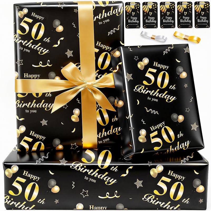 Wrapping Paper with Navy Blue and Gold Stripes Star Design - Birthday Wrapping Paper Set with Sticker Ribbon - Gift Wrapping Paper Folded Sheets for Men Boys Him Teenager Teen Male Him - Dark Blue Wrapping paper Birthday Gift Wrap for Graduations, Christmas, Hanukkah, Father's Day, Holiday, Weddings, All Occasion(6 Sheets,28"Lx20"W Per Sheet)