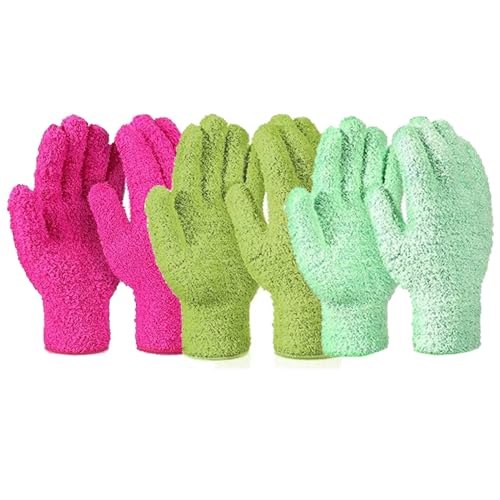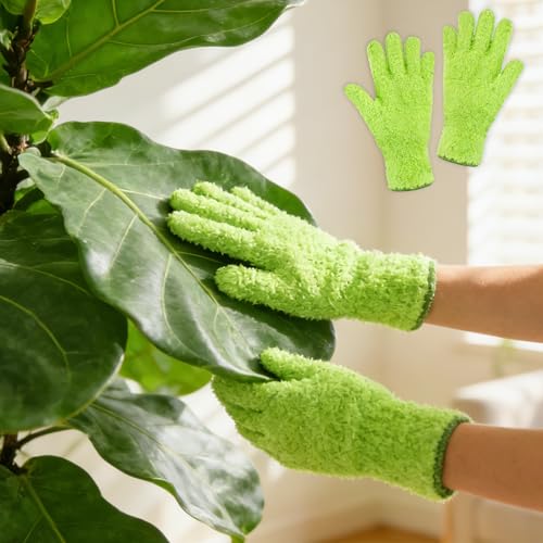 Arwiko 2 Pairs Microfiber Dusting Gloves Dusting Cleaning Gloves Household Cleaning Mittens for Plants, Blinds, Furniture, House, Cars (Red and Light Green)