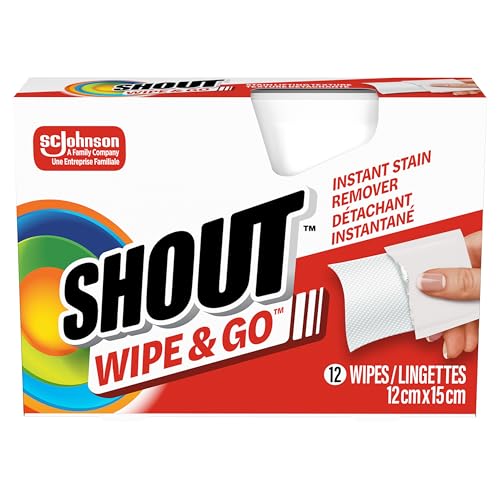 Shout Wipes Stain Remover for Clothes Laundry, Instant Stain Remover and Individually Wrapped, Travel Essentials, Works on Everyday Stains, 12 Wipes per Carton