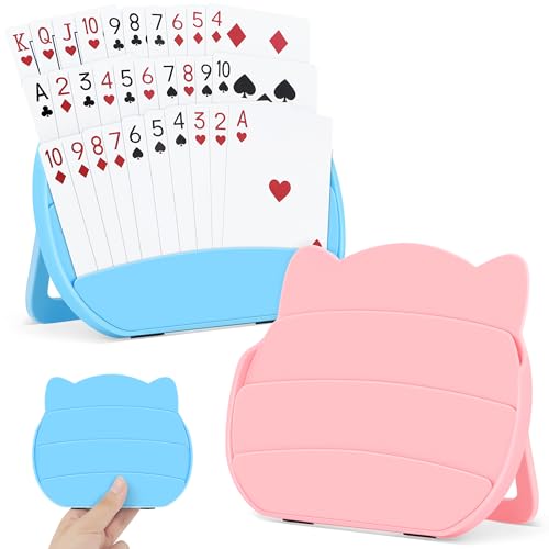 Zheigaoxea Playing Cards Holder for Little Hands, Multiple Layers Design for UNO Game Nights, Poker, Canasta, Spite Malice, Playing Card Accessories for Family Gatherings & Trave (2 Blue + 2 Green)