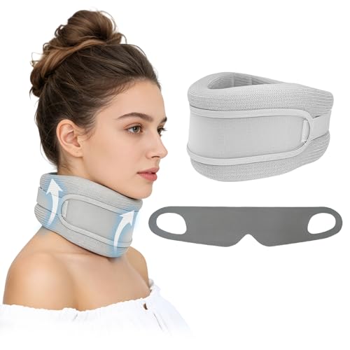Kokiya 3 Layer Neck Stretcher,Neck Cervical Collar,Inflatable Portable Personal Use,Traction Equipment for Office,Car,Travel,Adults, grey