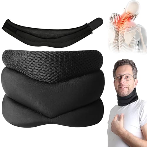 Leanockesa Upgraded Neck Support Brace for Sleeping - Cervical Collar with Adjustable Soft Foam, Relieves Neck Pain & Spine Pressure, Stabilizes Vertebrae for Women & Men (Black)