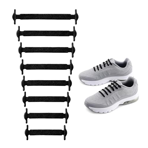UamGlsob 8mm Wide Elastic Laces No Tie, Flat Shoelaces with 8 Small Buckle Metal Locks, Quick Lacing Tieless Laces Closure
