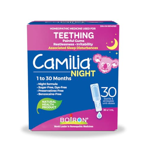 NEW Boiron Camilia Night 30 unit-doses. Homeopathic medicine used to relieve pain, restlessness, irritability due to teething, and associated sleep disturbances. From 1 to 30 months.